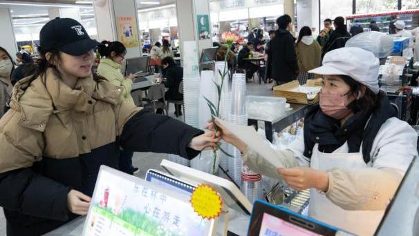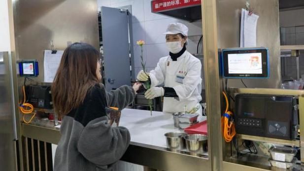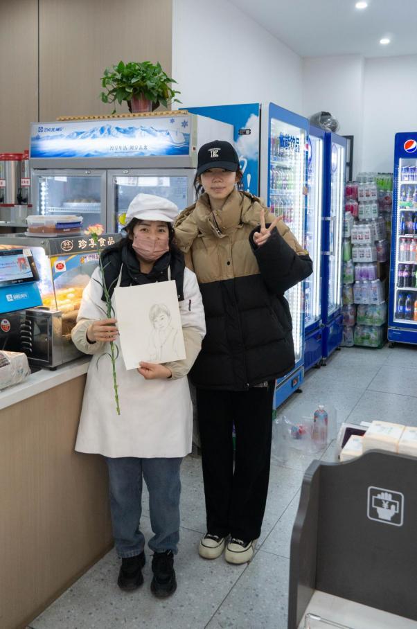 3月5日,成员们做好准备,携带着精心绘制的肖像和细心挑选的康乃馨,为食堂工作人员献上最真挚的祝福。收到礼物的工作人员脸上无不洋溢着幸福的笑容。一束鲜花、一幅画作,承载着学子们对他们的崇高敬意与美好祝愿——愿生活如鲜花般绚烂,如画卷般精彩。让我们携手并肩,共同描绘出心中那幅最美的校园图景。