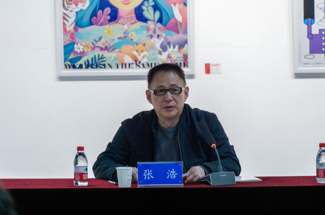张浩在致辞中介绍了设计艺术学院主办的“青春聚力共奋进,艺绘盛世新华章”学生主题设计作品展赛情况。它始创于2010年原设计系举办的曙星杯设计大赛,经过十多年的积淀和延续,成为学校“一系一品” 思想政治教育品牌建设亮点,是艺术实践与思政教育不断创新融合的结晶。张浩提出三点建议:一是强化实践育人,推动社会设计实验室建设,深入社区、乡村等真实场景,以艺术助力乡村振兴与文化传承;二是深化跨学科协同,鼓励专业课教师联合马克思主义学院教师共同研发课程,探索“中国式现代化”的艺术表达;三是夯实课程思政根基,构建价值观可视化数据库,用数据支撑教学改革与创新实践。激励师生以艺术服务社会、以设计回应时代。