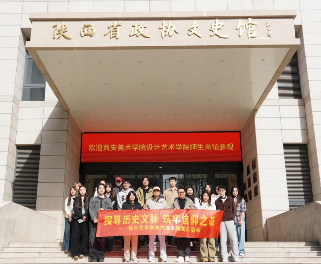 为深入学习贯彻党的二十届三中全会精神,深化党史学习教育成果,进一步引导全体师生厚植家国情怀、赓续红色血脉、筑牢信仰之基,4月3日下午,设计艺术学院党委组织师生党员、入党积极分子走进陕西省政协文史馆,采取“参观学习+主题讲述”的形式,沉浸式打造了一堂生动鲜活的“探寻历史文脉 筑牢信仰之基”主题党日活动——“行走的红色思政课。”