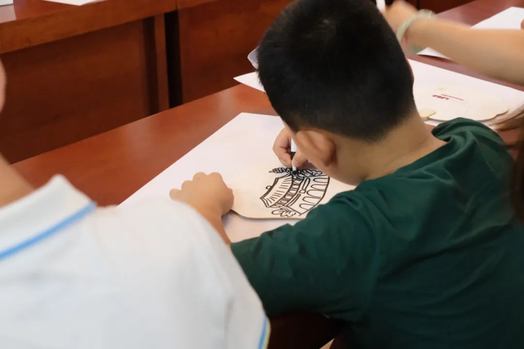 随后,小朋友们铺开画纸,团队成员穿梭其间,陪每位小朋友挑选心仪的画面主题,孩子们的小胳膊肘稳稳撑在桌沿,指尖捏紧水彩笔,动作里满是专注。画和平鸽的小朋友,先用水彩笔勾出翅膀的弧度,再换白色笔慢慢填涂,有孩子换了支小红笔,在鸽子嘴里画了道细细的线,像是衔着小旗子;画天安门的孩子们握着棕笔描城楼轮廓,举着黄笔问队员姐姐“屋顶是不是要亮一点”,得到肯定后,笔锋压得更实了。队员们蹲在旁边,教他们让国旗飘带的线条更流畅,提醒和平鸽的翅膀该往哪边弯更显灵动,听着孩子们时不时冒出的“这样画对不对”,笑着点头时,看那些画纸上的红与黄、飞鸽与城楼,正随着水彩笔的痕迹,把课堂里的红色故事,慢慢铺成了看得见的模样。