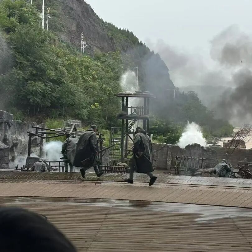 随后团队来到壶口瀑布旁的大型实景剧场,观看《黄河大合唱》民族抗战实景剧。《黄河大合唱》实景剧,是陕西旅游集团有限公司携手宜川县政府精心打造的山水交响实景演出,以冼星海笔下《黄河大合唱》为灵魂纽带,八路军东渡黄河的壮阔历史为经纬。