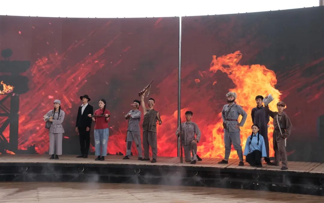 演出开场,三声激昂长号奏响,我们跟随袁根生的脚步穿越回那个烽火连天的年代,亲眼目睹黄河儿女如何以血肉之躯筑起钢铁长城,保家卫国展现出“宁跳黄河死,不做亡国奴”的铮铮铁骨与铁血豪情。在那个波澜壮阔的年代,无数仁人志士奉献出自己的生命,用热血捍卫民族尊严,他们的精神在这片土地上熠熠生辉。演出尾声,当《保卫黄河》的合唱如惊雷般炸响,黄河的怒涛声与多人大合唱在山谷间碰撞回荡,那一刻忽然懂了,黄河的浪花里不仅有泥沙,更藏着一个民族的骨头。这场从光影到实景、从自然到人文的旅程,让队员们在黄河的涛声里读懂了自然造化的雄奇,更有民族精神的滚烫。展现了黄河儿女的英雄气概和自强不息的民族英雄气节。