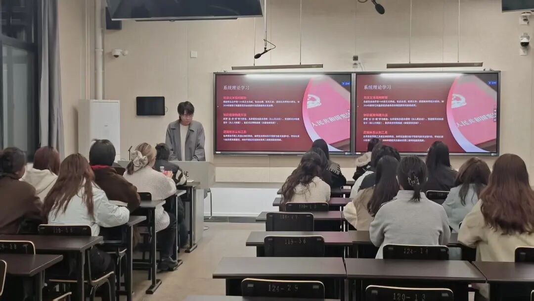 最后,伍昱达同学以“青年担当”为核心,紧密结合共青团引领青年、服务青年、组织青年的使命职责,讲述了青年与法治社会建设的内在关联,并强调作为新时代青年,恪守法律底线是我们不可逾越的基本准则,但青年的担当不应止步于此。我们更应主动肩负起传播宪法精神的时代责任,积极向身边同学传递法治理念,让法治知识深入人心、让法治信仰凝聚共识。
