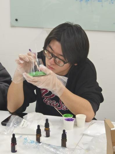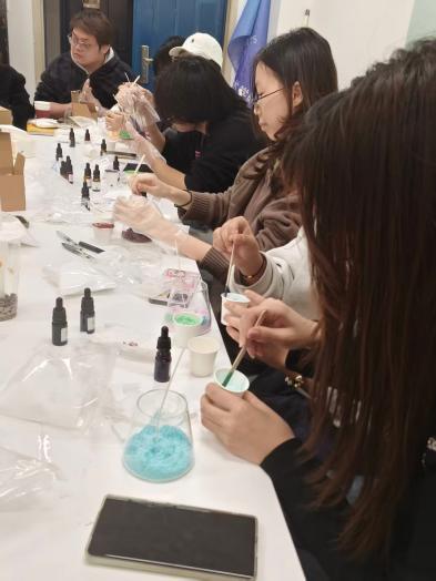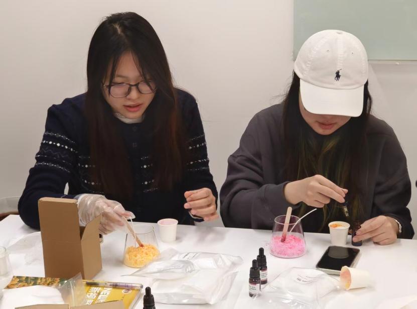 活动以手工创作为核心载体,通过沙粒与蜡烛的创意融合,为学院及全校参与学生搭建专业化心灵对话平台。现场陈列白沙、颜料与蜡烛芯,营造温暖氛围,且打破专业基础限制,参与者可自由用沙粒勾勒图案、搭配色彩,让每支蜡烛成为独特“情绪容器”。过程中,同学们从拘谨逐步过渡到全情投入,在手工专注中卸下压力,沙粒的细腻与烛光的柔和,有效舒缓内心焦虑,有学生反馈:“铺沙时,烦躁随之梳理平复,沉浸式创作的治愈感很显著。”