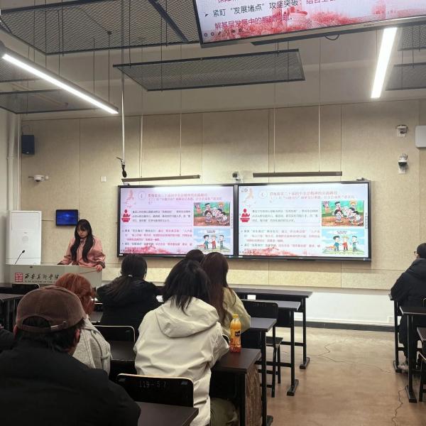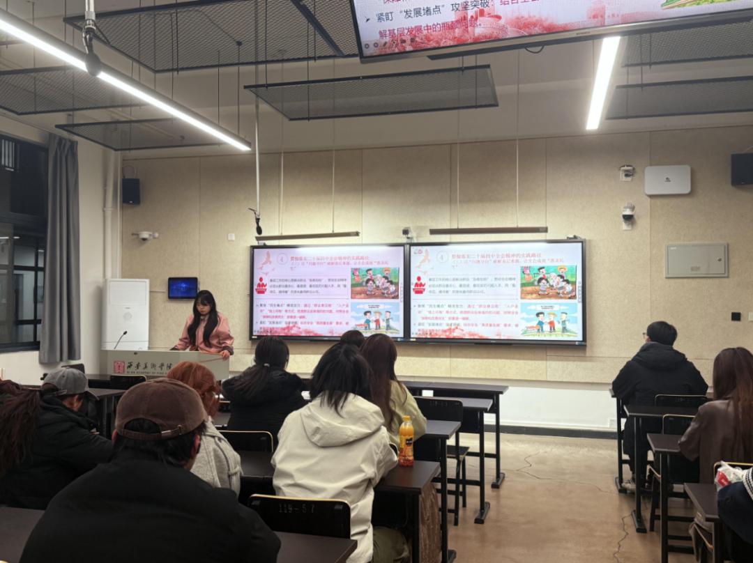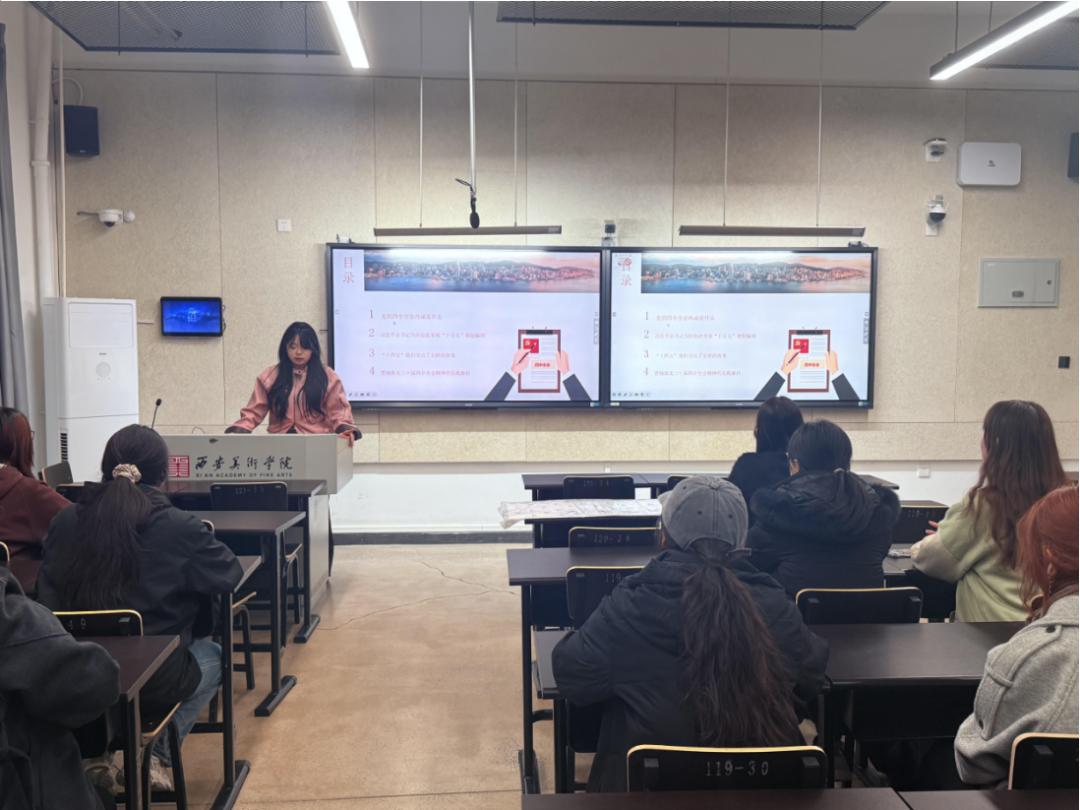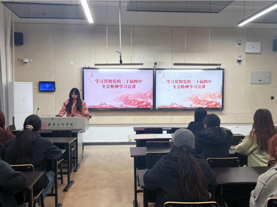 为了学习贯彻党的二十届四中全会精神,推动理论学习走深走实,让新时代发展蓝图与红色基因融入青年成长。设计艺术学院团总支组织召开以“学习贯彻党的二十届四中全会精神”主题团课。本次团课的主讲人为郝海琴同学。