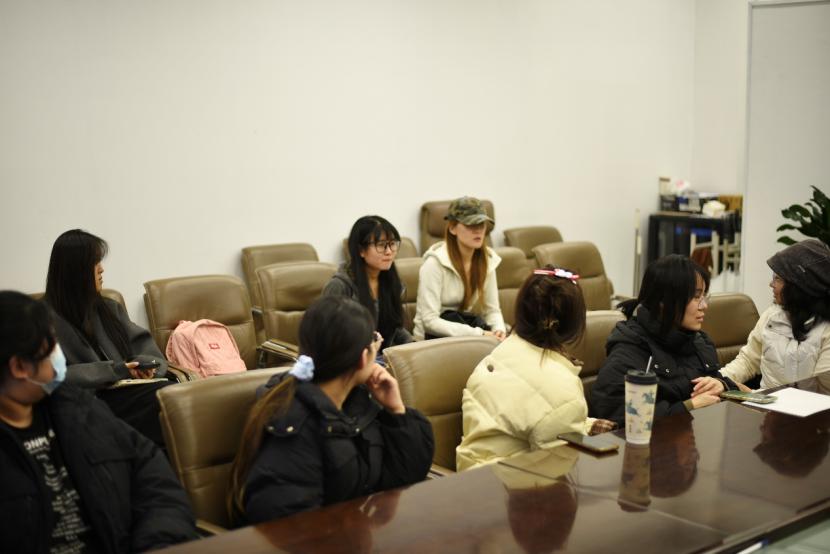 分享结束后,现场进入热烈的互动答疑环节。同学们针对英语自我介绍优化、复试临场应试技巧积极提问,臧静薇、焦也恬两位学姐结合自身经验逐一耐心解答,给出个性化、可落地的备考建议。从英语表达的细节打磨,到作品集面试的应答逻辑,每一个问题都得到精准回应,让同学们在交流中扫清备考迷茫,进一步明晰复试备考方向。