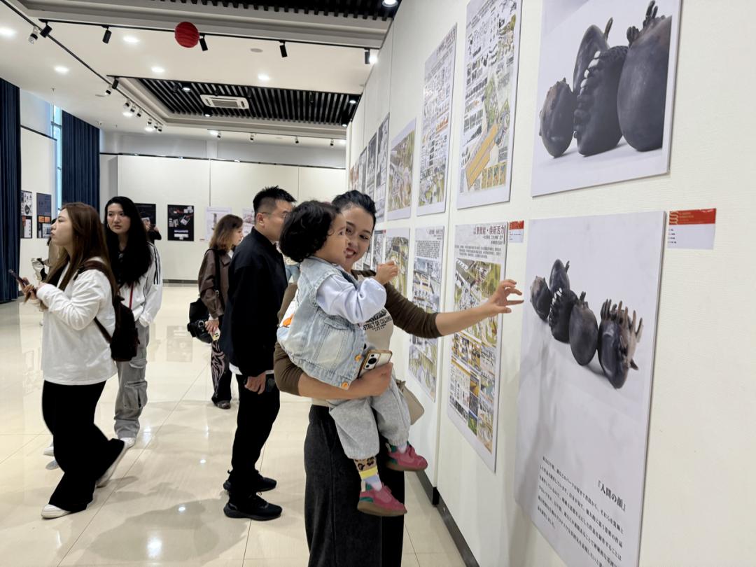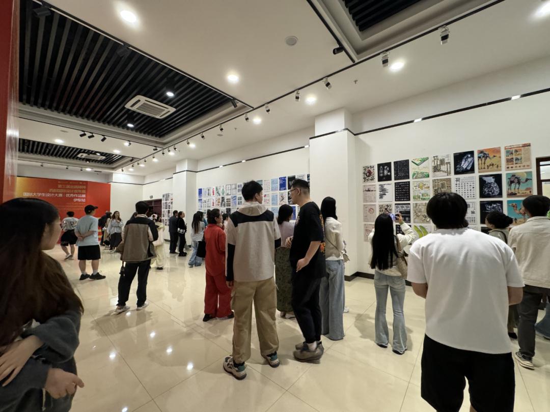 在展览现场,伊犁师范大学的学生们、伊宁市民在一幅幅作品前细细浏览。这些凝结着青年们灵思慧意的设计作品无不呈现出不同地域、不同文化的独特魅力,同时又彰显出设计者们对美的共同追求。