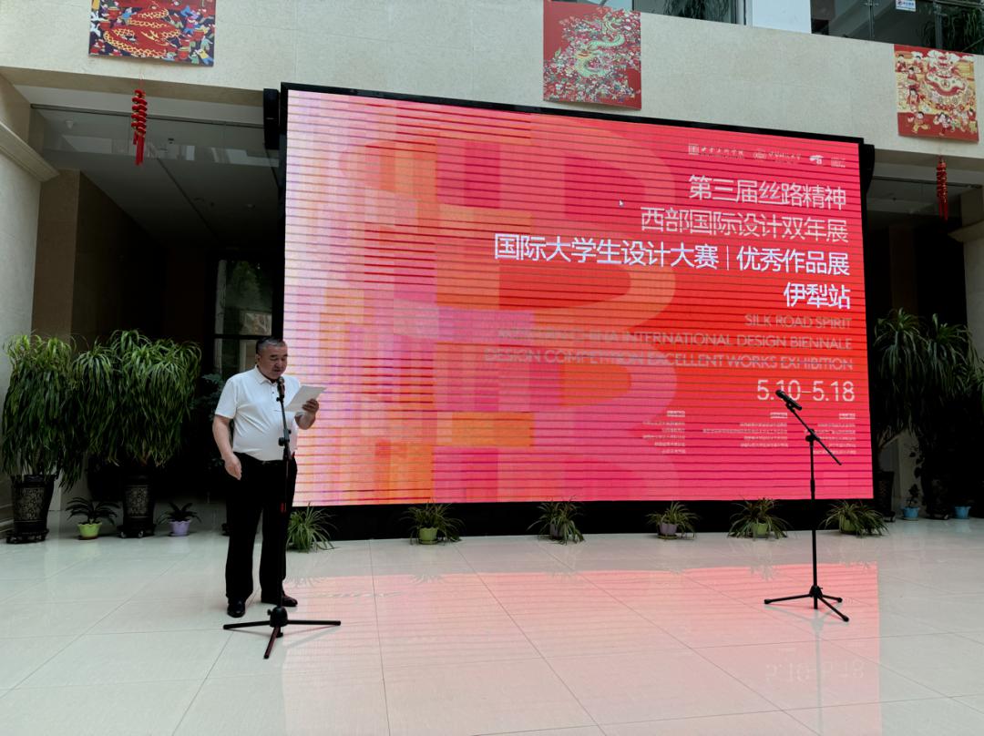5月10日,第三届“丝路精神——西部国际设计双年展”国际大学生设计大赛优秀作品巡展伊犁站开幕式在在伊宁市新时代文明实践中心(金陵群众文化活动中心)开幕。