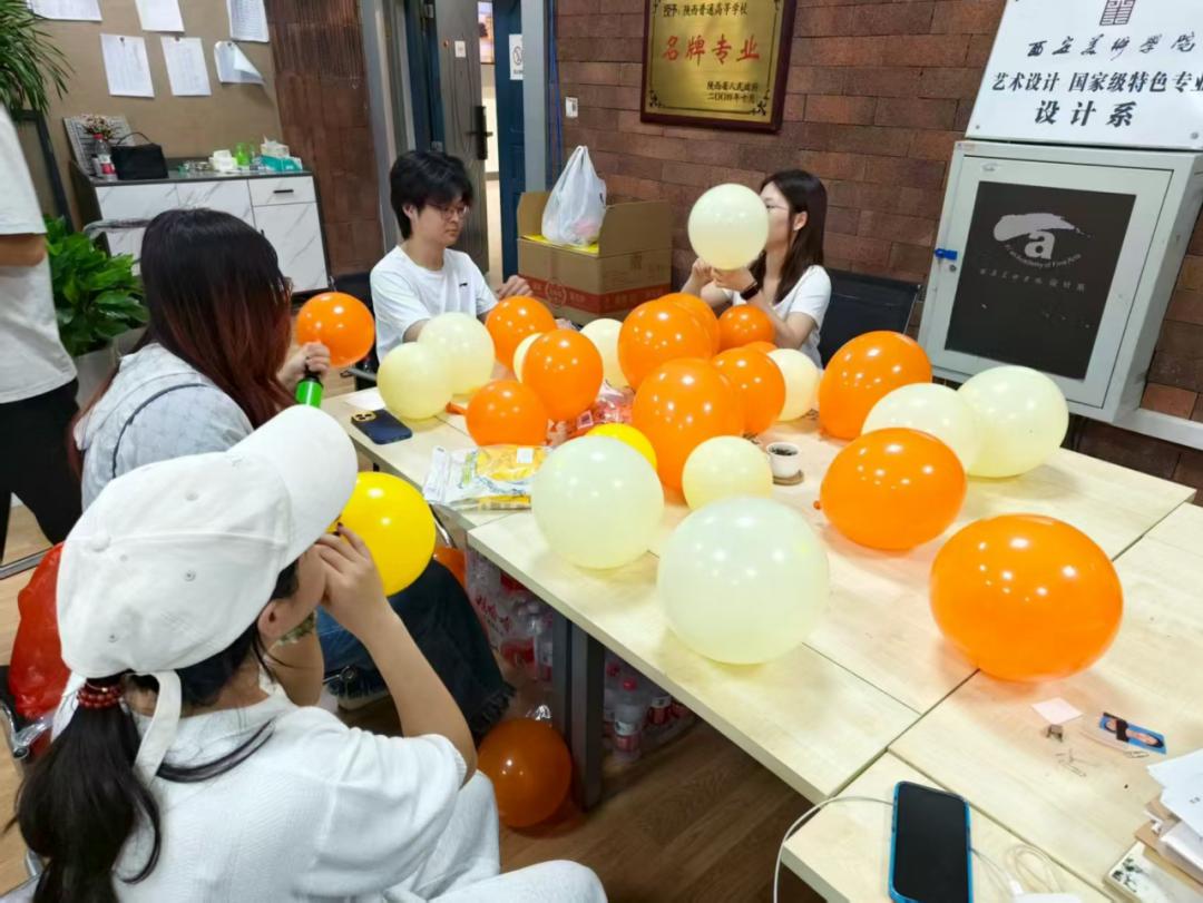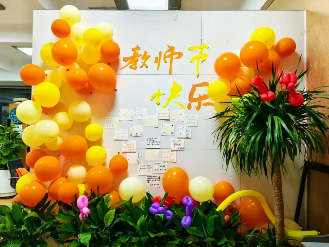 在教师节前夕,设计艺术学院的同学们便早早行动起来,在学院办公室开展了精心的布置,用充满创意与心意的方式,为老师们打造了一个温馨的节日氛围。手绘的贺卡上,每一笔线条、每一种色彩都凝聚着同学们对老师的感恩之情,绚烂的气球点缀在办公室的各个角落,瞬间让空间充满了节日的喜悦气息;教室走廊电子宣传屏以字母滚动和视频图片展播方式“为教师亮灯”,屏幕播放着 “充斥回忆的照片”,记录了师生共同成长的珍贵瞬间,每一帧都承载着师生之间的温暖故事。