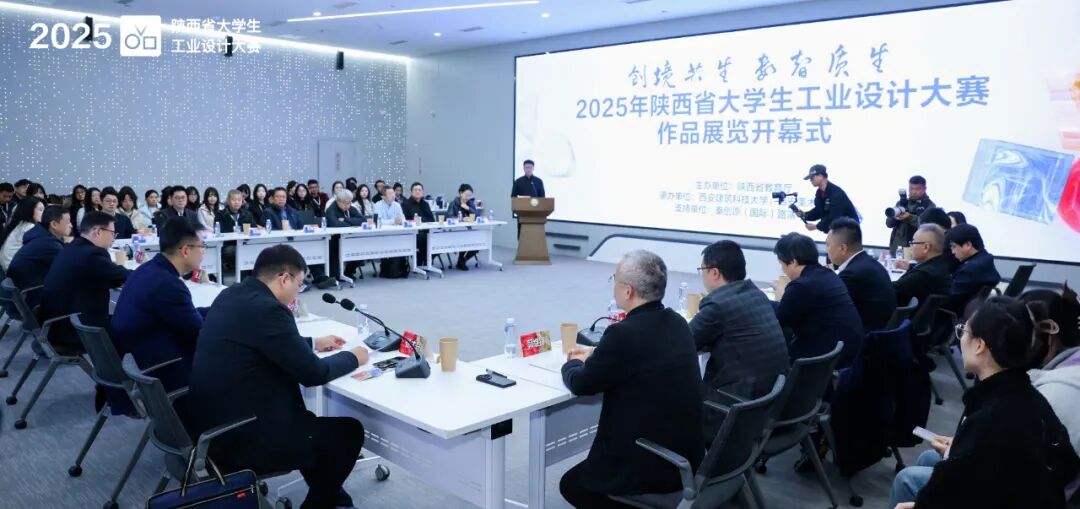 11月8日,陕西省教育厅主办,西安美术学院、西安建筑科技大学共同承办的2025年陕西省大学生工业设计大赛作品展览与评审会在秦创原金融中心隆重举行。西安美术学院副校长张浩,陕西省科学技术厅产业促进处副处长牛斌,陕西省广播电视局一级调研员牛小奇,西安建筑科技大学创新创业学院副院长杨才兴、艺术学院党委书记蒋正、副院长姜涛,秦创原科技创新投资股份有限公司副总经理郭欣、秦创原(国际)路演中心总经理李涛,中国美协工业设计艺委会副主任、清华大学美术学院张雷教授,中央美术学院设计研究所所长王选政教授,鄂州职业大学校长李梁军教授,鲁迅美术学院原工业设计学院院长薛文凯教授、南京艺术学院工业设计学院副院长霍春晓教授、西北工业大学工业设计系主任陈登凯教授、苟秉宸教授等10余所省内外高校的工业设计领域专家。西安美术学院教务处处长郭继锋、副处长李巍,设计艺术学院副院长刘莹及相关师生团队,西安建筑科技大学学生志愿者等负责本次活动的统筹组织与实施工作。