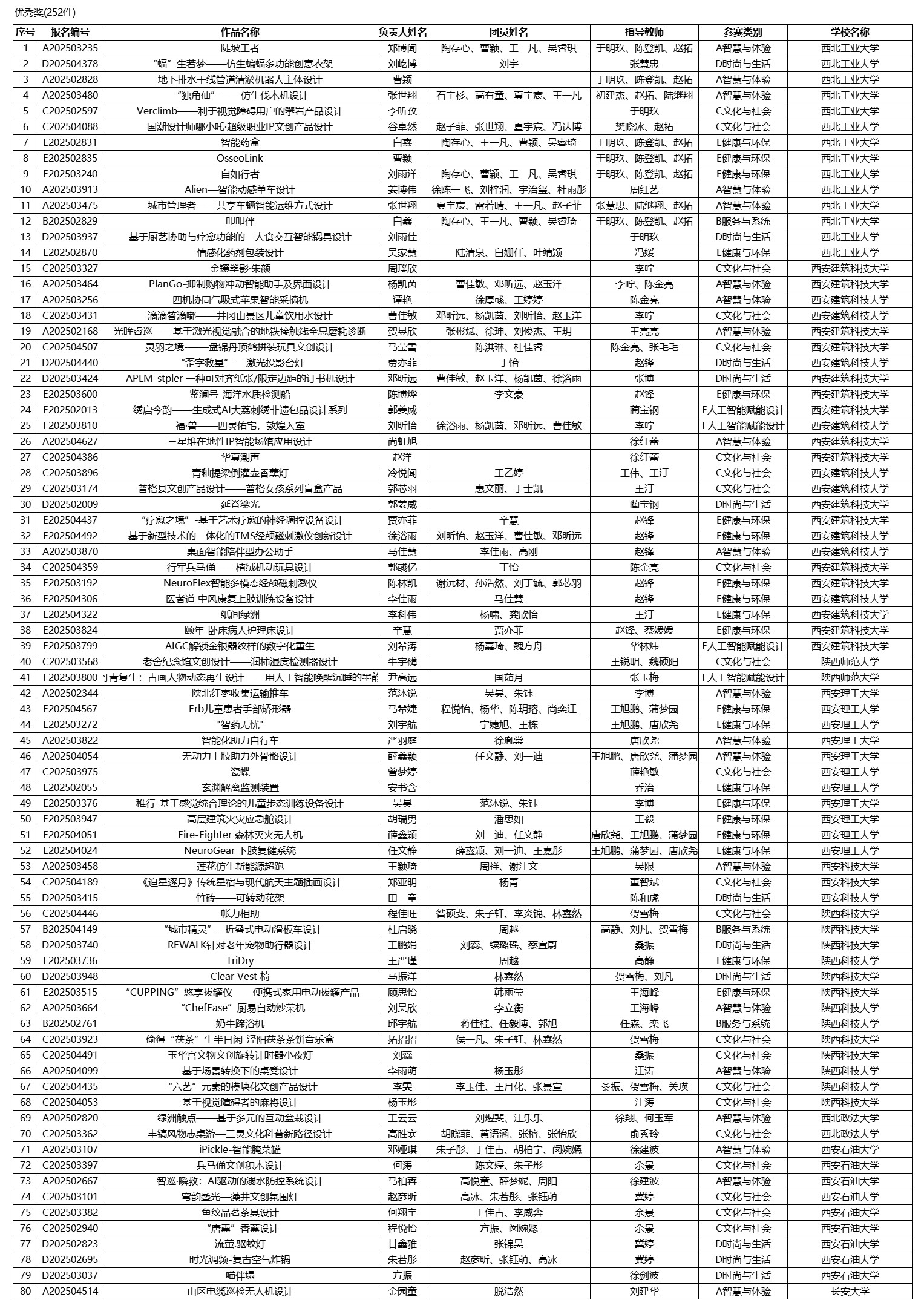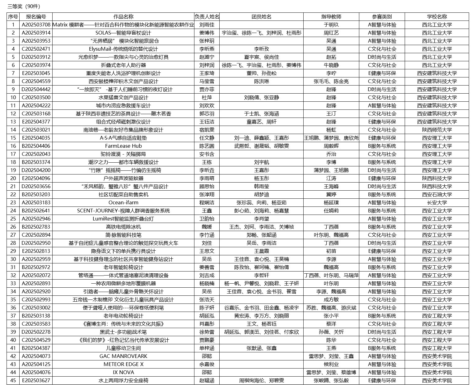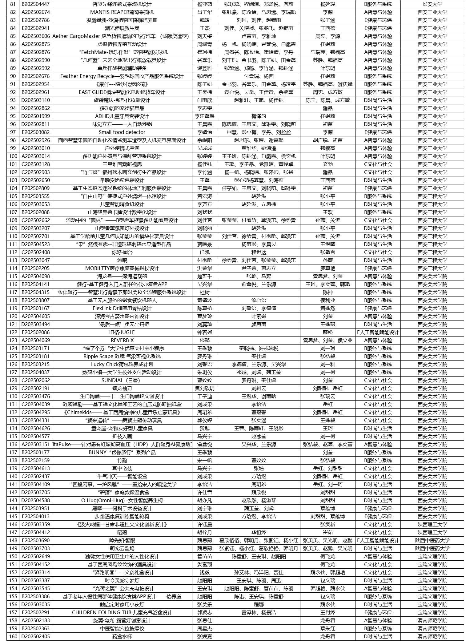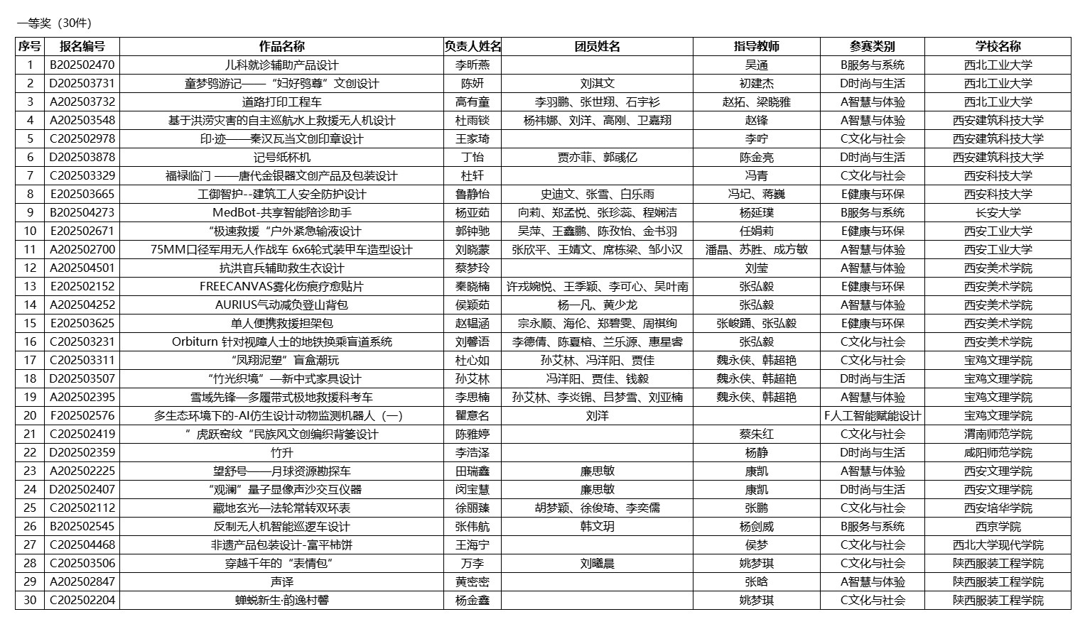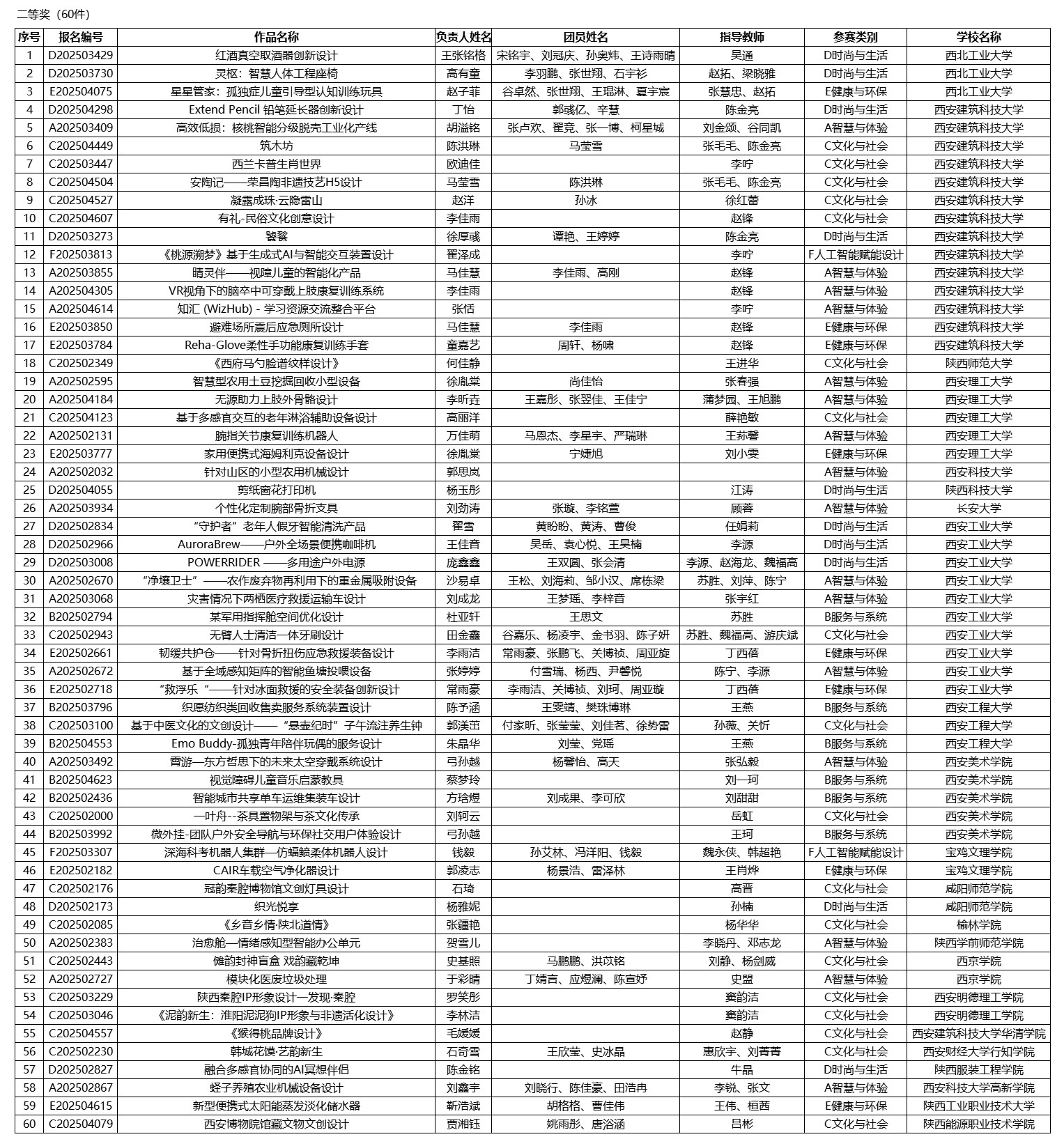 2025年陕西省大学生工业设计大赛由陕西省教育厅主办,西安建筑科技大学和西安美术学院联合承办。根据陕西省教育厅办公室《陕西省教育厅办公室关于举办2025年陕西省大学生工业设计大赛的通知》,本届大赛共征集到有效参赛作品2556件,经组委会组织专家评审,一等奖作品30件,二等奖作品60件,三等奖作品90件,优秀奖作品252件,现将获奖名单予以公示。