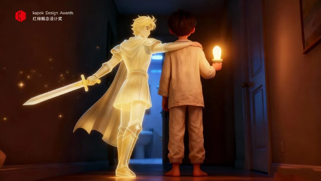 获奖作品《要有勇气鸭 —— 儿童夜灯》以用户需求为核心,精准捕捉儿童夜间时的恐惧痛点。作品采用 “手持宝剑即化身王子” 的童趣设定,通过充满想象力的设计引导孩子直面黑暗,助力他们独立完成夜间洗漱、入睡等日常活动,让设计在解决实际问题的同时传递治愈力量。