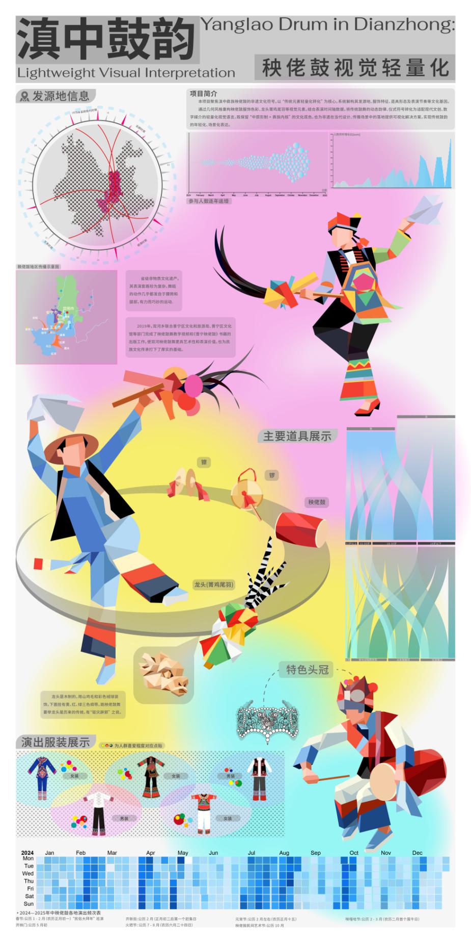 以信息可视化语言解码秧老鼓文化,图解与数据图表相映成趣,信息图形表达让让传统民俗焕发鲜活魅力。