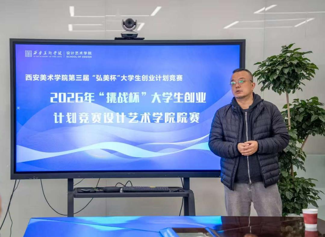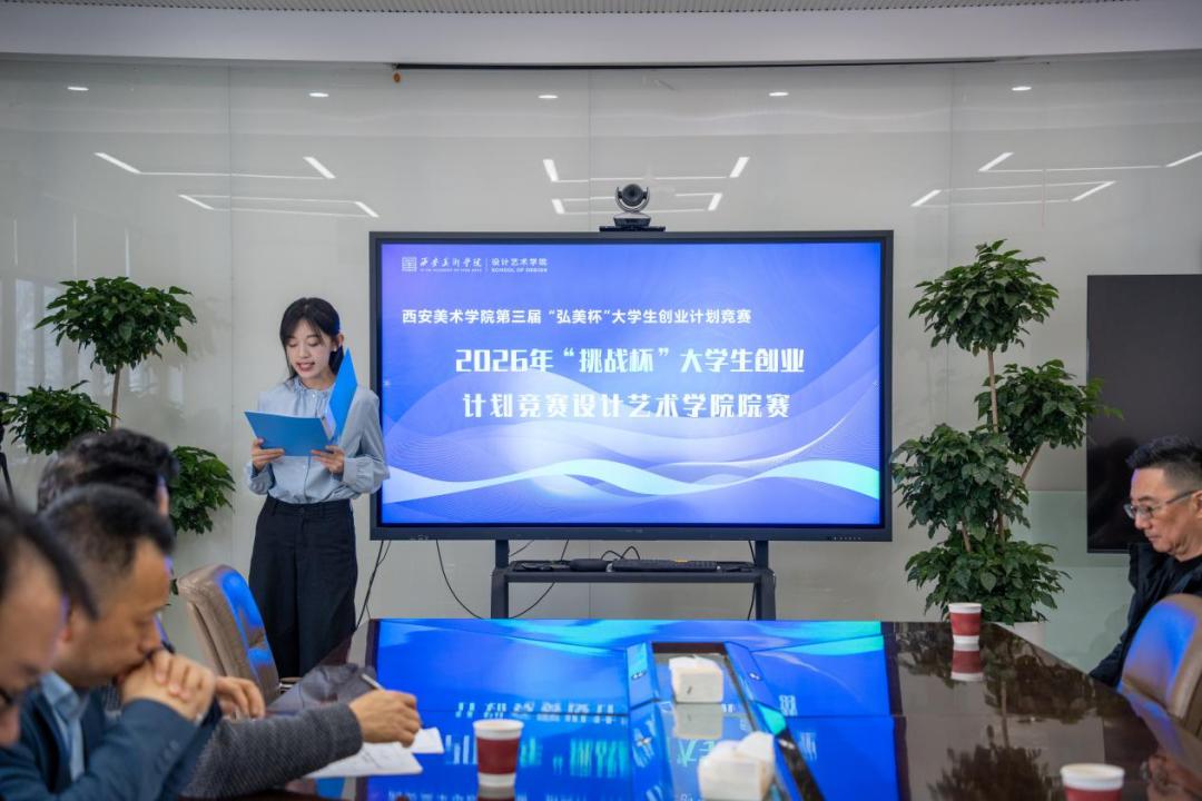 为进一步激发学生创新精神、创业意识和创造活力,提升创新创业实践能力,以党建引领为创新创业教育高质量发展赋能,3月10日,西安美术学院第三届“弘美杯”暨设计艺术学院2026年“挑战杯”大学生创业计划竞赛院赛在308会议室顺利举办。学院党委书记王山、党委副书记姜亦文、各参赛团队指导老师及成员出席本次活动,活动特别邀请校外专家董小泰、杨兴顿、吴博担任评审导师,19支参赛团队围绕创意项目展开激烈角逐。