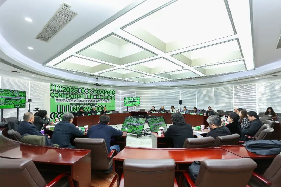 中国美术家协会平面设计艺委会名誉主任何洁,主任韩绪,副主任吕曦、陈磊、苗登宇、林存真、赵璐,秘书长陈正达,副秘书长陈楠、郭振山,委员王晓予、田博、向海涛、刘平云、孙大刚、汪田明、张犁、张犇、张晓东、金贵成、袁由敏、高山出席了现场会议。年会围绕“平面设计中的文脉表达与当代创新”主题开展思想学习、年度工作报告、探讨交流以及2026年工作部署,会议由陈正达秘书长主持。